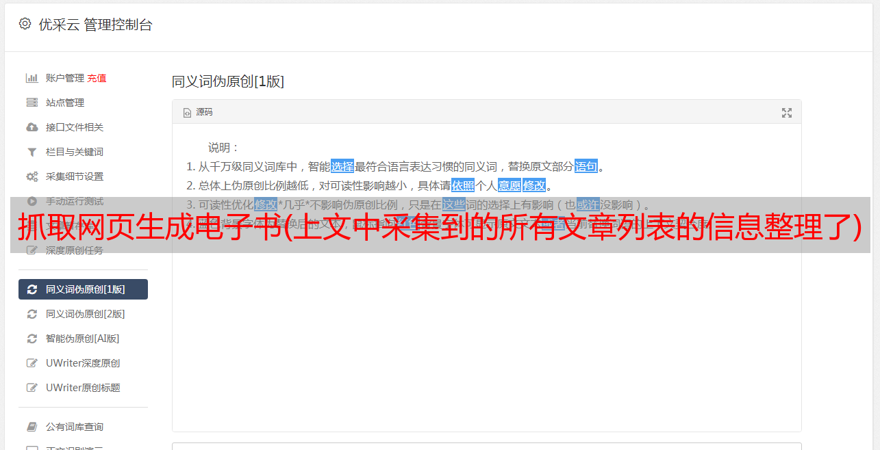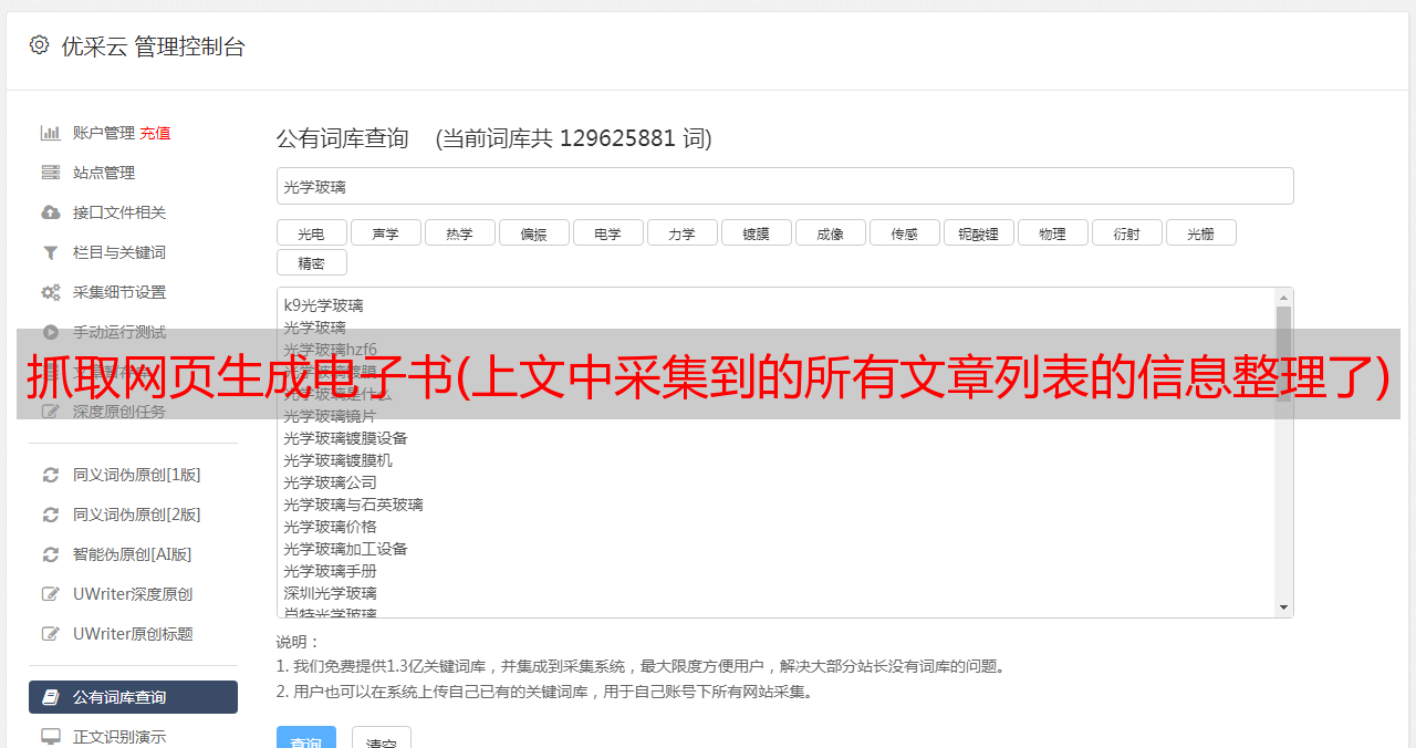 优采云 发布时间: 2022-03-17 14:23抓取网页生成电子书(上文中采集到的所有文章列表的信息整理了)