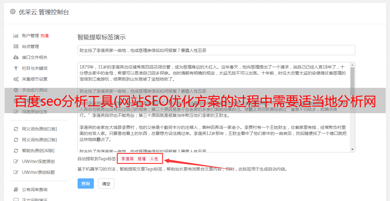 优采云 发布时间: 2022-03-17 20:15百度seo分析工具(网站SEO优化方案的过程中需要适当地分析网站排名)