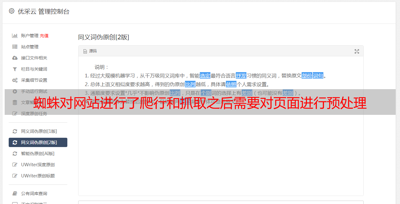 优采云 发布时间: 2021-05-10 07:25蜘蛛对网站进行了爬行和抓取之后需要对页面进行预处理
