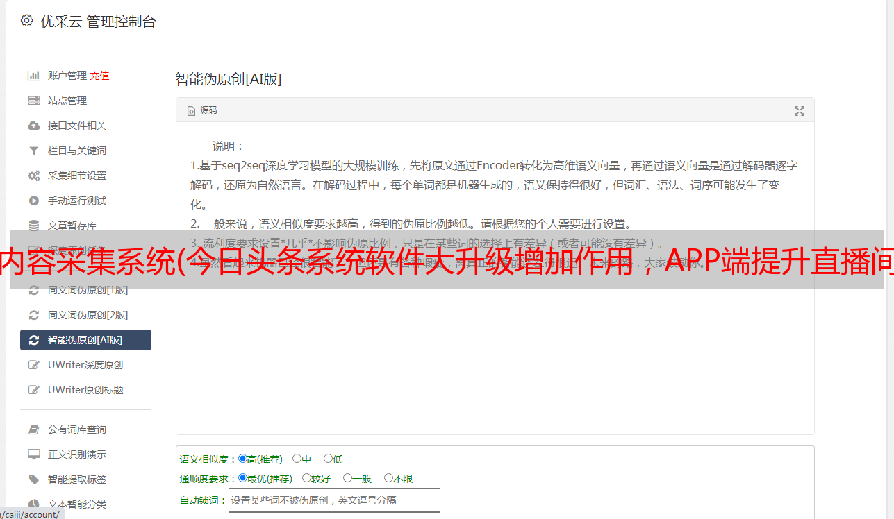 资讯内容采集系统(今日头条系统软件大升级增加作用,APP端提升*敏*感*词*作用 )