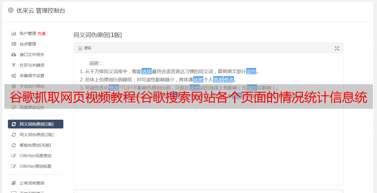 优采云 发布时间: 2022-03-18 23:05谷歌抓取网页视频教程(谷歌搜索网站各个页面的情况统计信息统计及应用技巧)