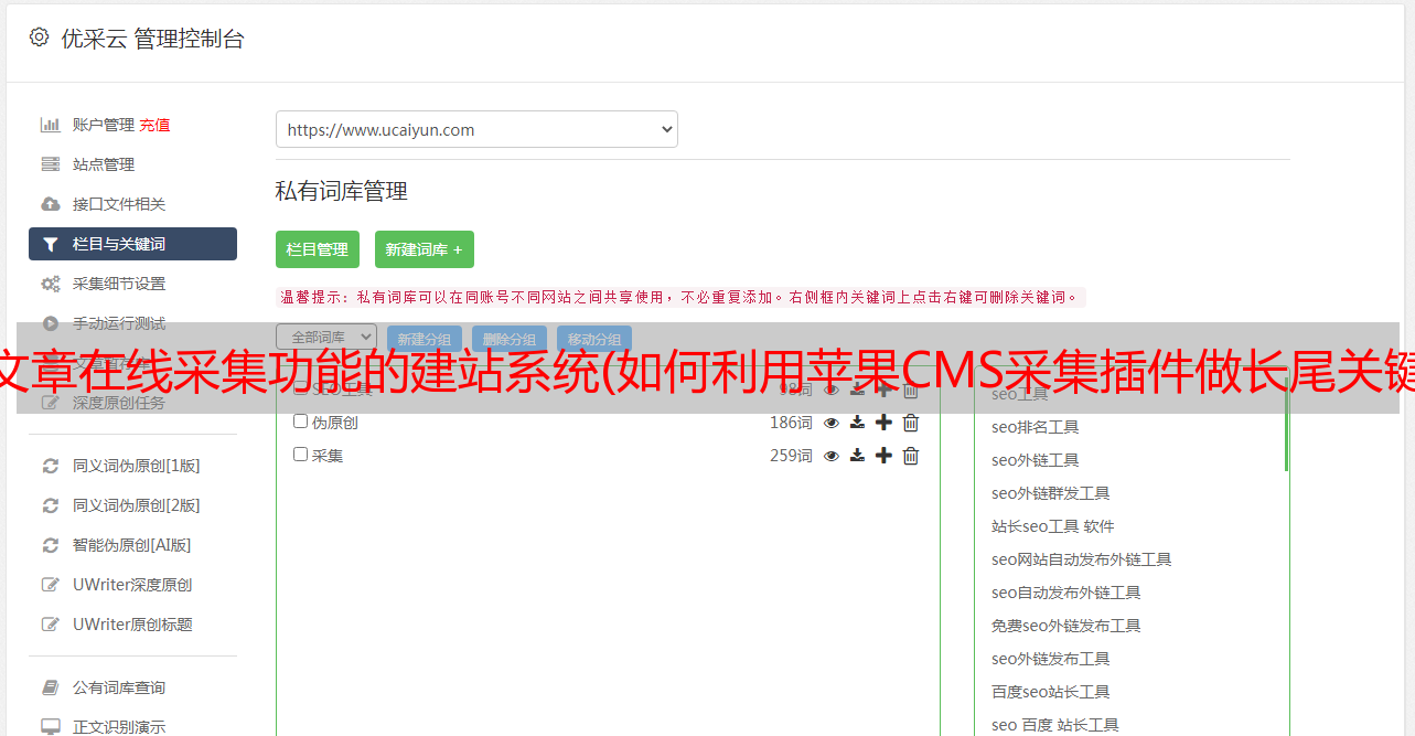 优采云 发布时间: 2022-03-19 04:13文章在线采集功能的建站系统(如何利用苹果CMS采集插件做长尾关键词?(组图)