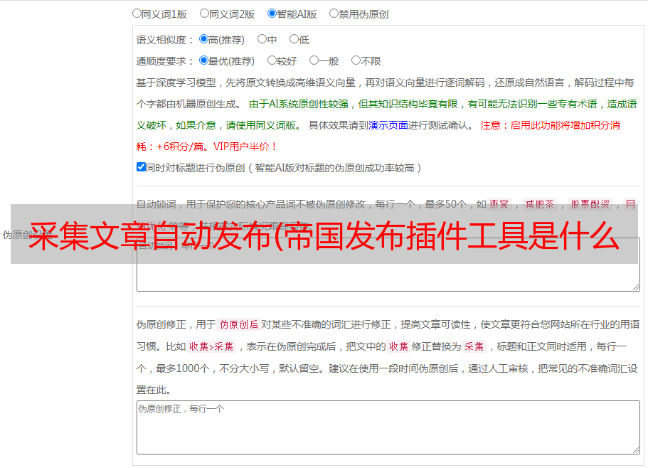 4、伪原创保留字(当文章原创未被伪原创使用时设置核心字)