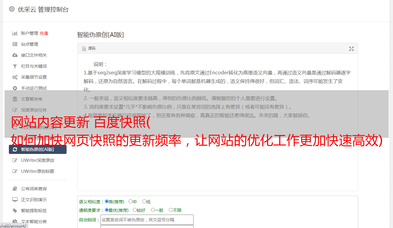 如何加快网页快照的更新频率,让网站的优化工作更加快速高效)