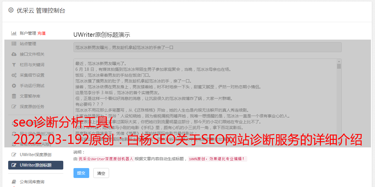 seo诊断分析工具( 2022-03-192原创:白杨SEO关于SEO网站诊断服务的详细介绍 )