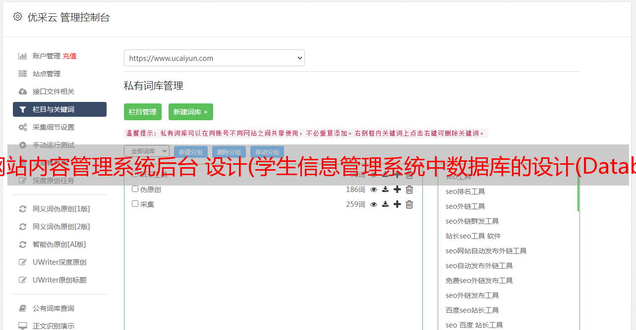 优采云 发布时间: 2022-03-19 20:02网站内容管理系统后台 设计(*敏*感*词*管理系统中数据库的设计(Database.28No.4))