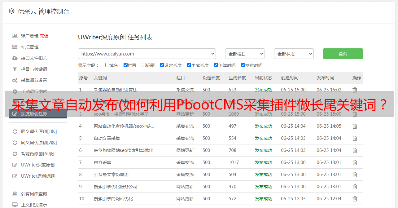 采集文章自动发布(如何利用PbootCMS采集插件做长尾关键词?或储存其它平台 )