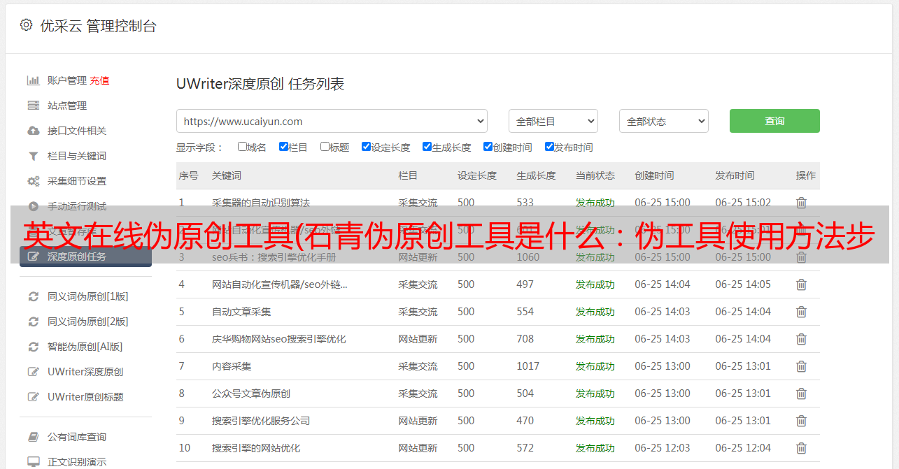 优采云 发布时间: 2022-03-20 06:00英文在线伪原创工具(石青伪原创工具是什么:伪工具使用方法步骤)