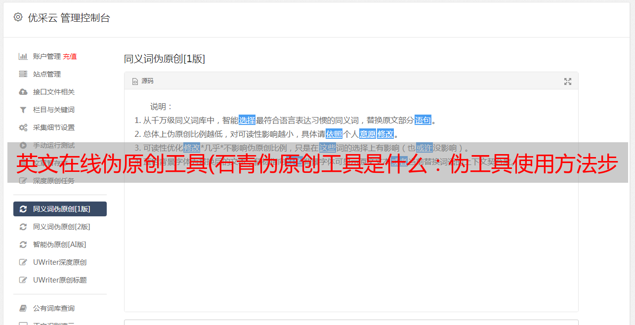 英文在线伪原创工具(石青伪原创工具是什么:伪工具使用方法步骤)