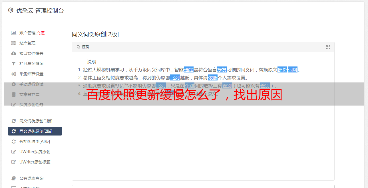 1. 百度快照更新缓慢和文件恢复缓慢的原因