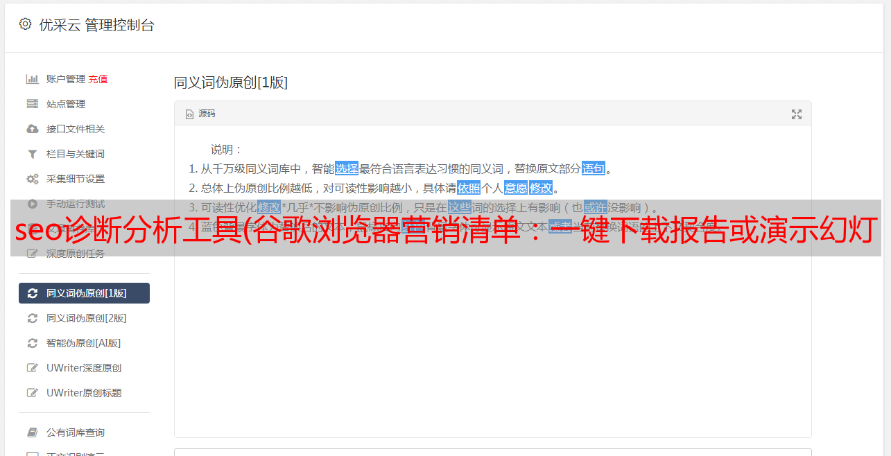 优采云 发布时间: 2022-03-20 20:09seo诊断分析工具(谷歌浏览器营销清单:一键下载报告或演示幻灯片(图))