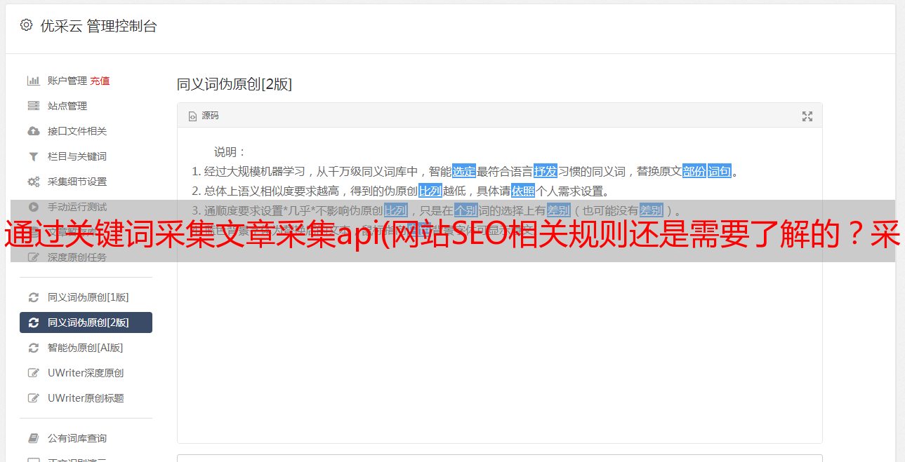 优采云 发布时间: 2022-03-21 01:01通过关键词采集文章采集api(网站SEO相关规则还是需要了解的?采集器