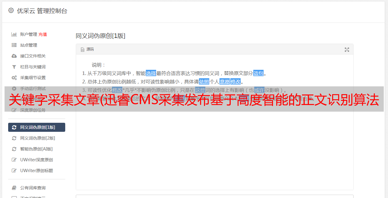 优采云 发布时间: 2022-03-21 17:29关键字采集文章(迅睿CMS采集发布基于高度智能的正文识别算法介绍)