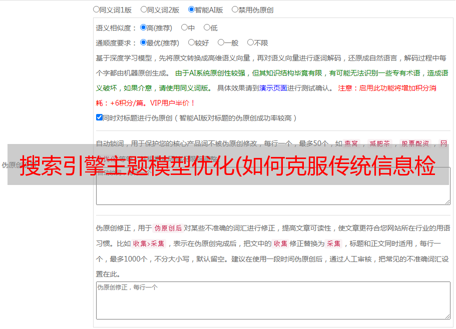 优采云 发布时间: 2022-03-22 00:15搜索引擎主题模型优化(如何克服传统信息检索中文档相似度计算方法的缺点)