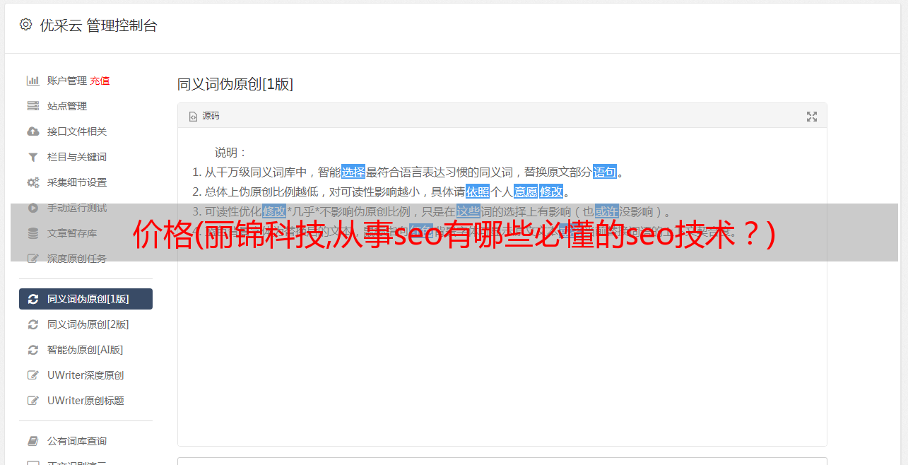 价格(丽锦科技,从事seo有哪些必懂的seo技术?)