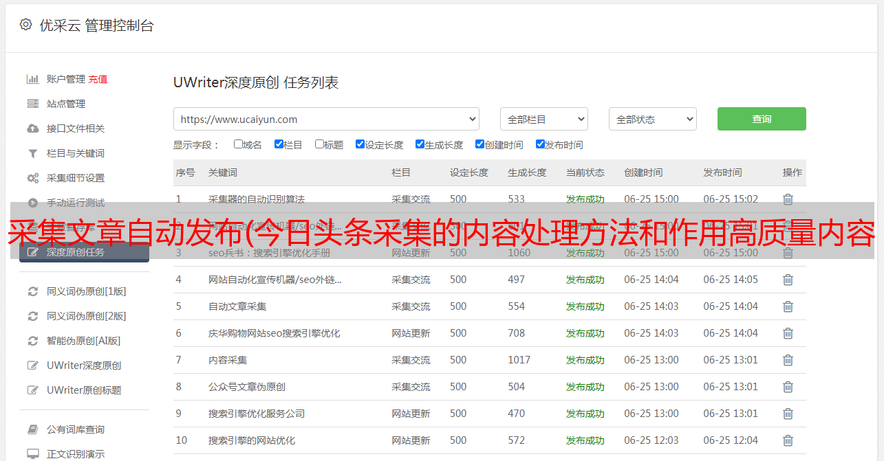 优采云 发布时间: 2022-03-23 01:26采集文章自动发布(今日头条采集的内容处理方法和作用高质量内容