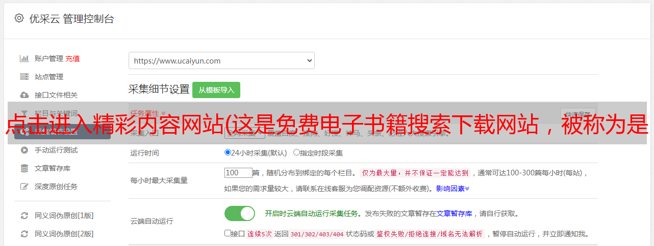 优采云 发布时间: 2022-03-23 02:04点击进入精彩内容网站(这是免费电子书籍搜索下载网站,被称为是世界上最大的免费图书馆