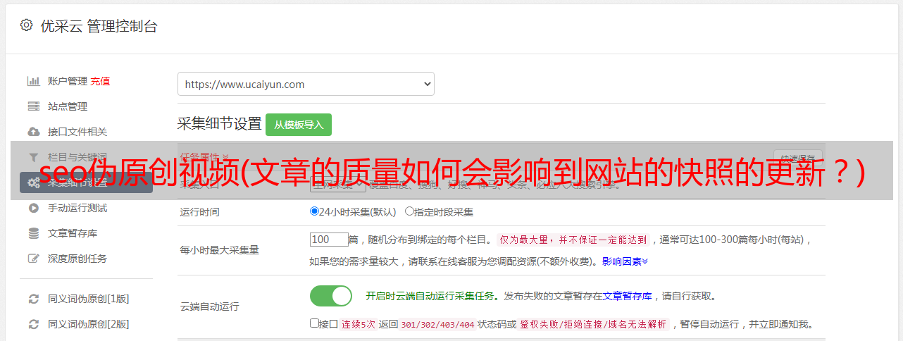 优采云 发布时间: 2022-03-23 17:01seo伪原创视频(文章的质量如何会影响到网站的快照的更新?)