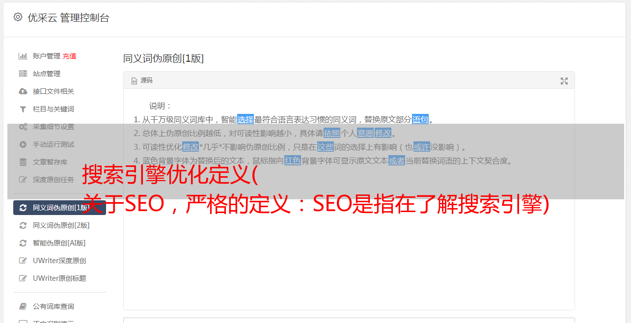 优采云 发布时间: 2022-03-23 18:23搜索引擎优化定义(