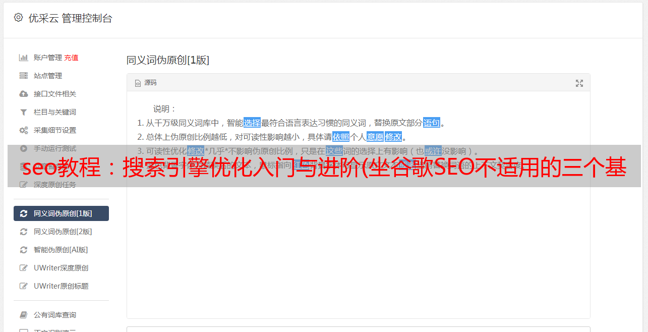 优采云 发布时间: 2022-03-24 03:17seo教程:搜索引擎优化入门与进阶(坐谷歌SEO不适用的三个基础工具,你知道吗?)