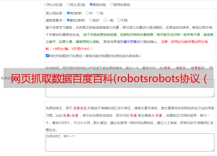 网页抓取数据百度百科(robotsrobots协议(robots.txt)Robots协议用来告知搜索引擎哪些页面能被抓取)