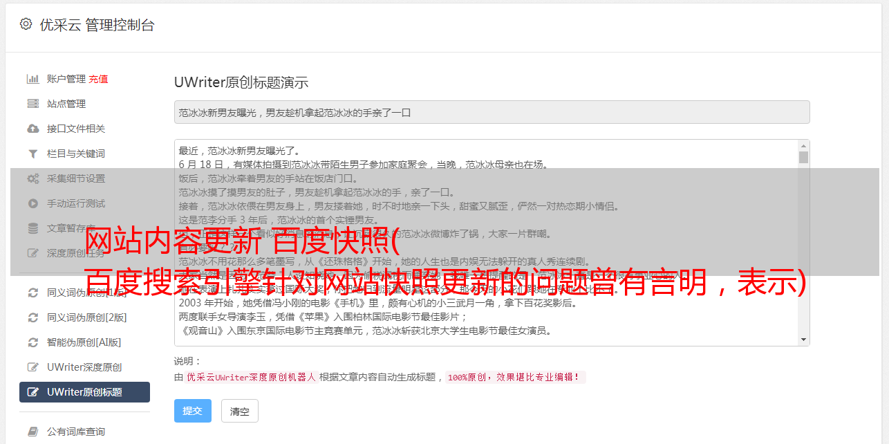 网站内容更新 百度快照( 百度搜索引擎针对网站快照更新的问题曾有言明,表示)