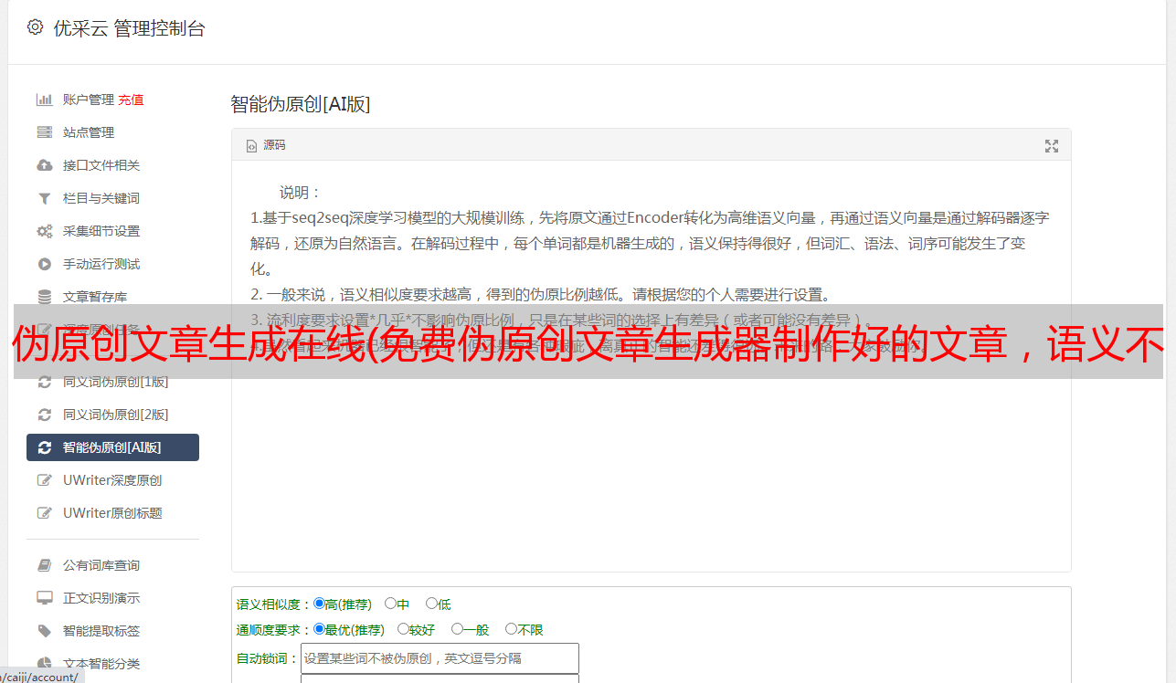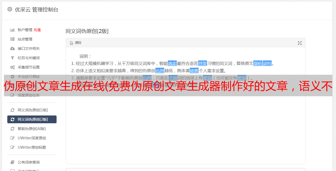 伪原创文章生成在线(免费伪原创文章*敏*感*词*制作好的文章,语义不变,或反转 )