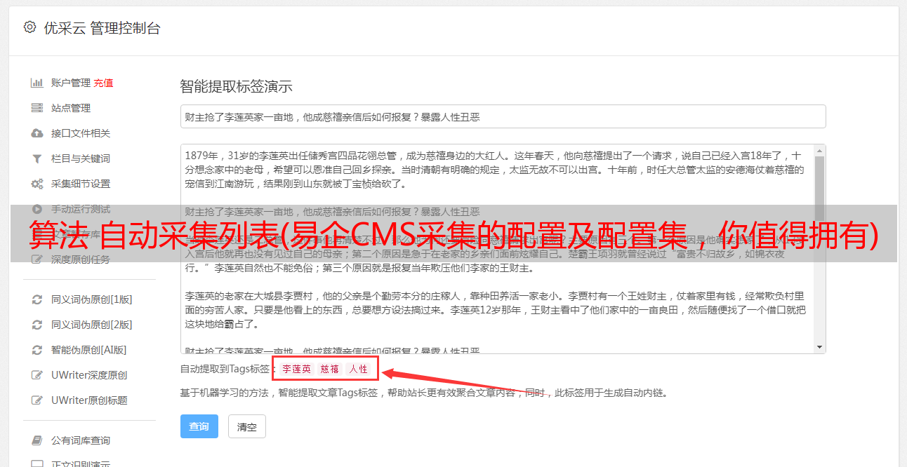 算法 自动采集列表(易企CMS采集的配置及配置集,你值得拥有)