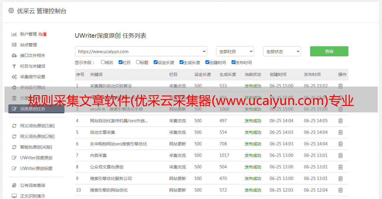 1.打开软件输入关键词即可实现全自动采集,多站点采集发布,自动过滤采集文章,与行业无关文章,保证内容100%相关性,全自动批量挂机采集,无缝对接各大cms出版商,后采集 自动发布推送到搜索引擎!