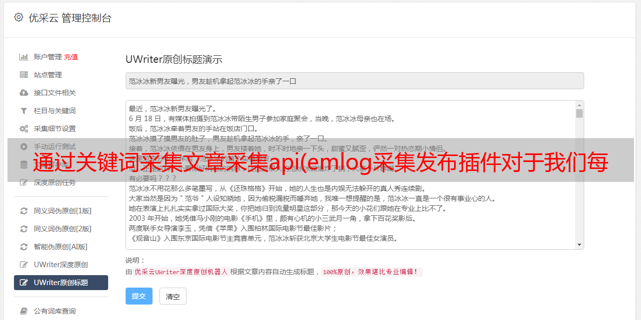 emlog采集发布插件内置中英翻译,简体中文翻译,支持各种大小cms发布和推送,进入我们的长尾关键词点击获取我们需要文章。采集发布功能可以在多平台和全网发布采集,支持定向和增量采集发布。采集发布只保存去水印及相关信息后最纯净的内容,支持本地再创作或直接自动化伪原创发布。