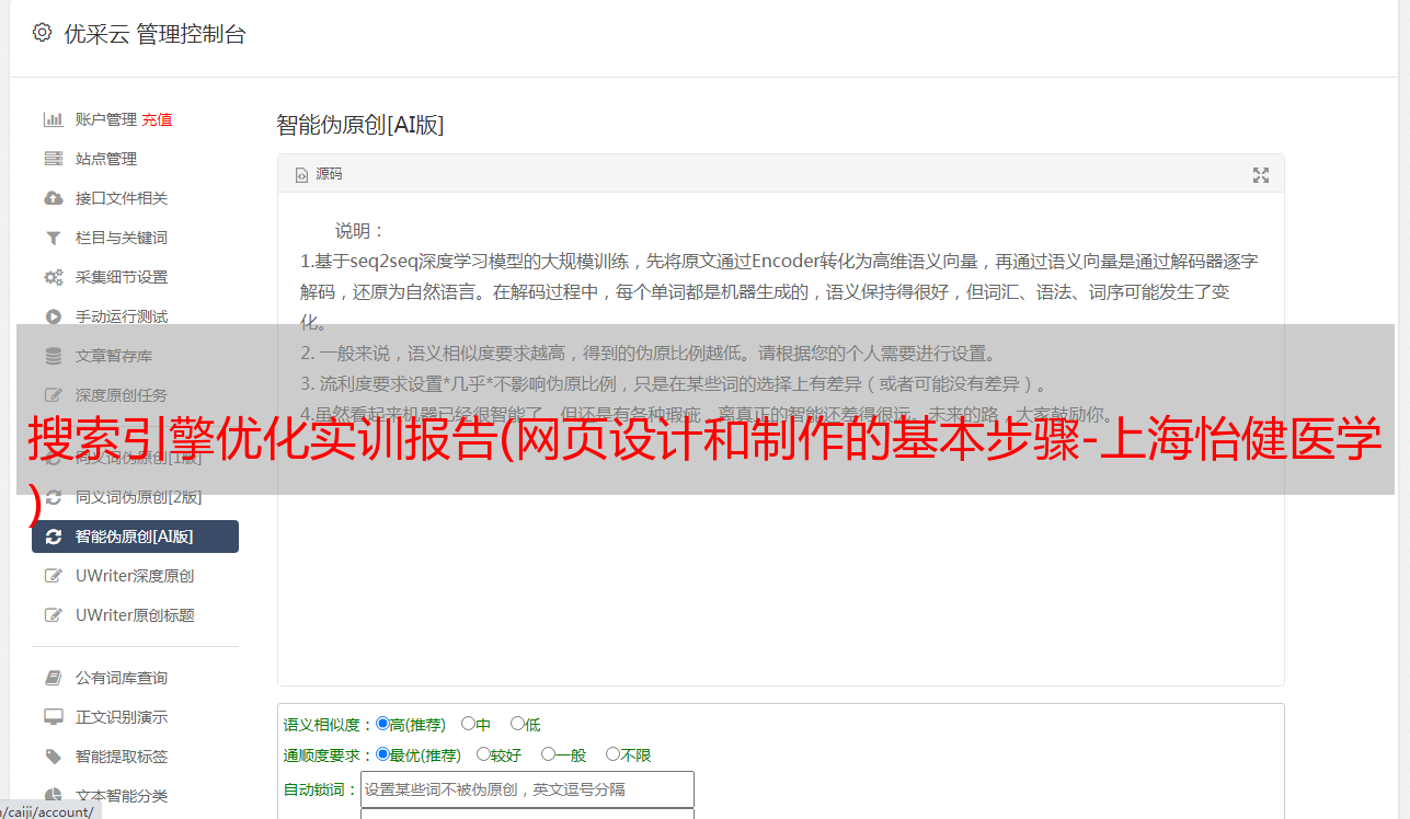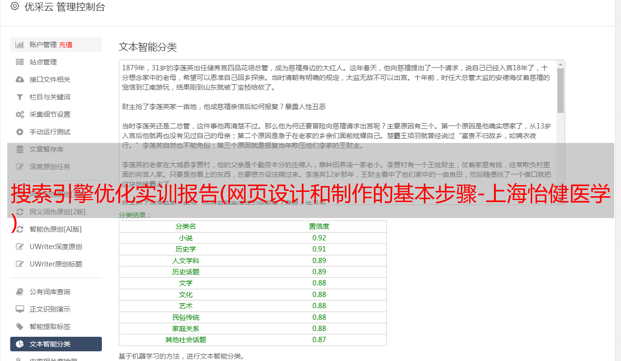 优采云 发布时间: 2022-03-26 00:22搜索引擎优化实训报告(网页设计和制作的基本步骤-上海怡健医学
