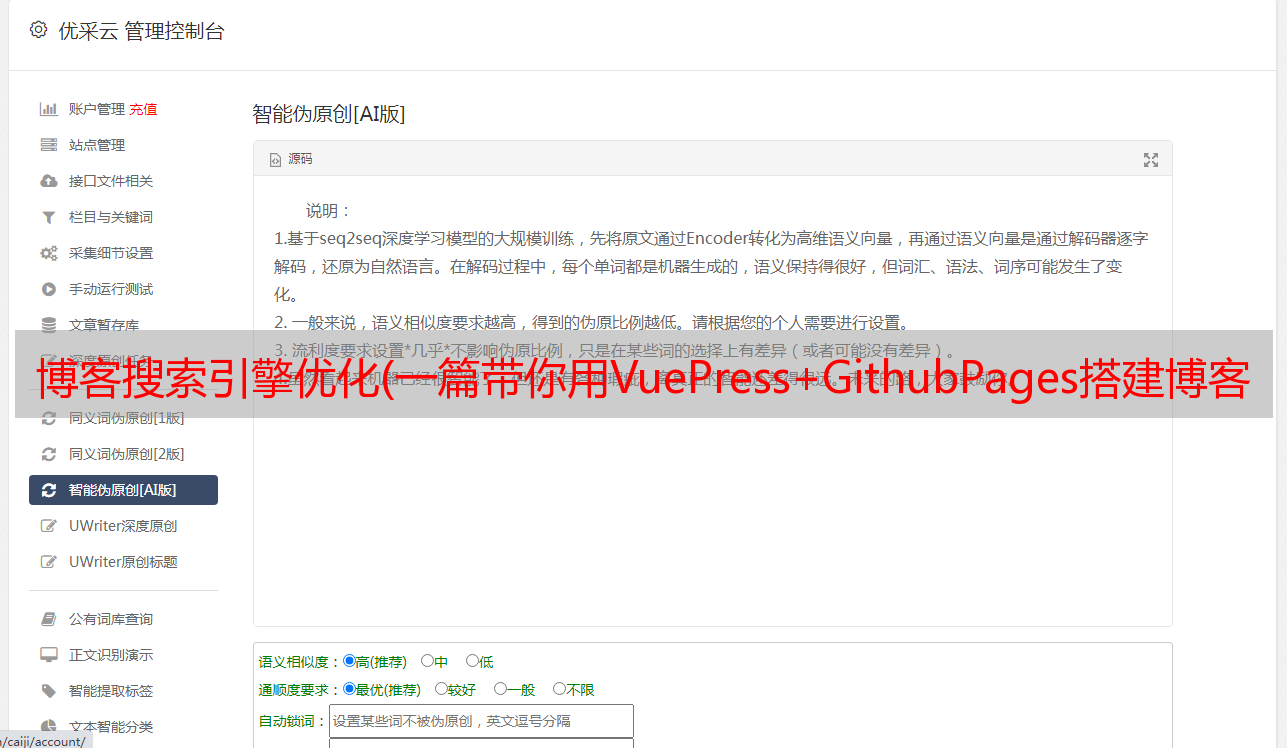 优采云 发布时间: 2022-03-26 07:14博客搜索引擎优化(一篇带你用VuePress+GithubPages搭建博客的SEO技巧)