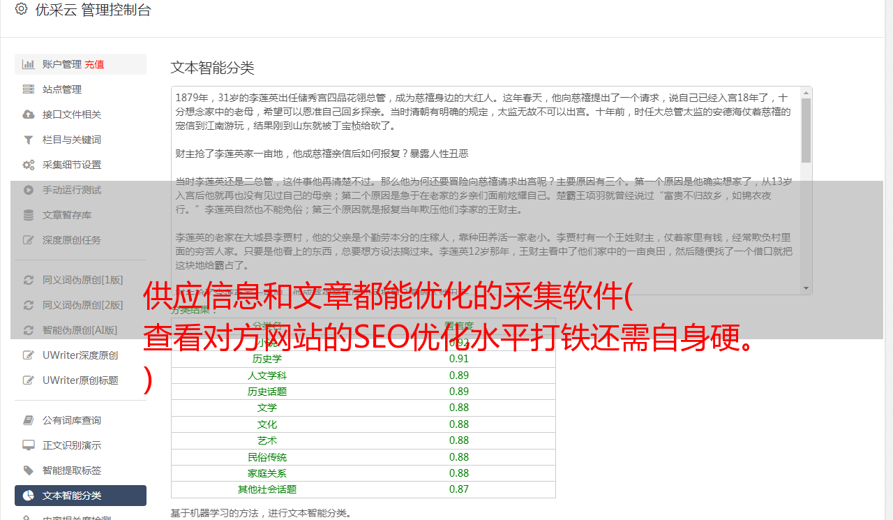 供应信息和文章都能优化的采集软件( 查看对方网站的SEO优化水平打铁还需自身硬。 )