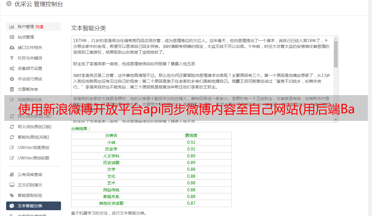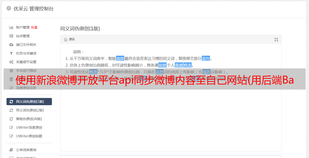 优采云 发布时间: 2022-03-26 21:19使用新浪微博开放平台api同步微博内容至自己网站(用后端BaaS快速搭建专属无点赞评论——b言b语后,立马就自己动手部署了)
