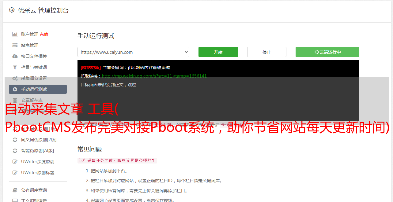自动采集文章 工具( PbootCMS发布完美对接Pboot系统,助你节省网站每天更新时间)
