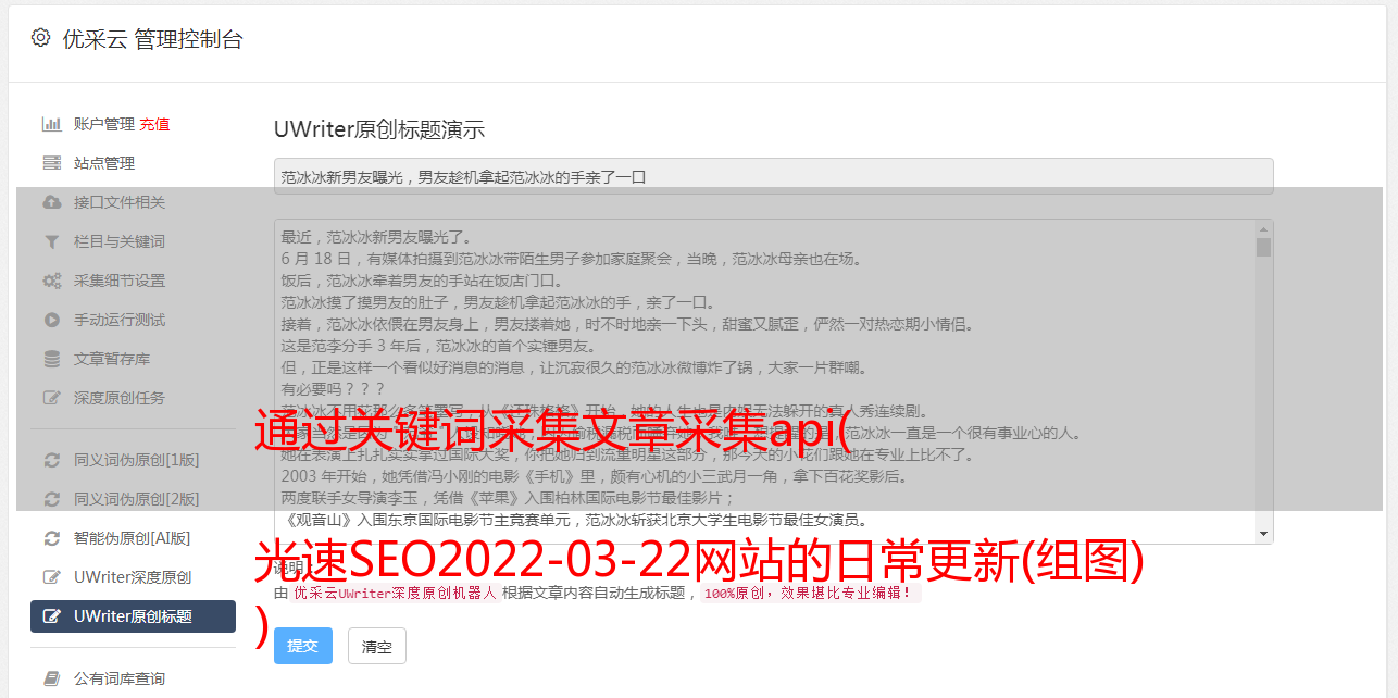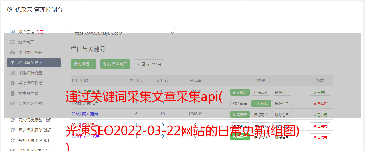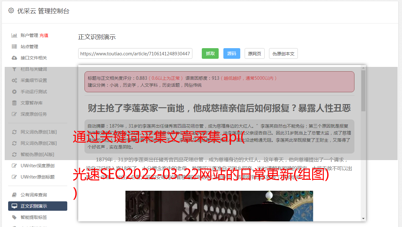 通过关键词采集文章采集api( 光速SEO2022-03-22网站的日常更新(组图) )