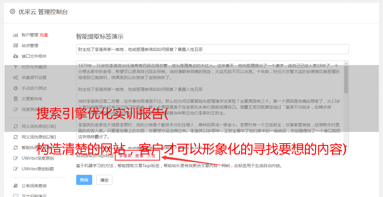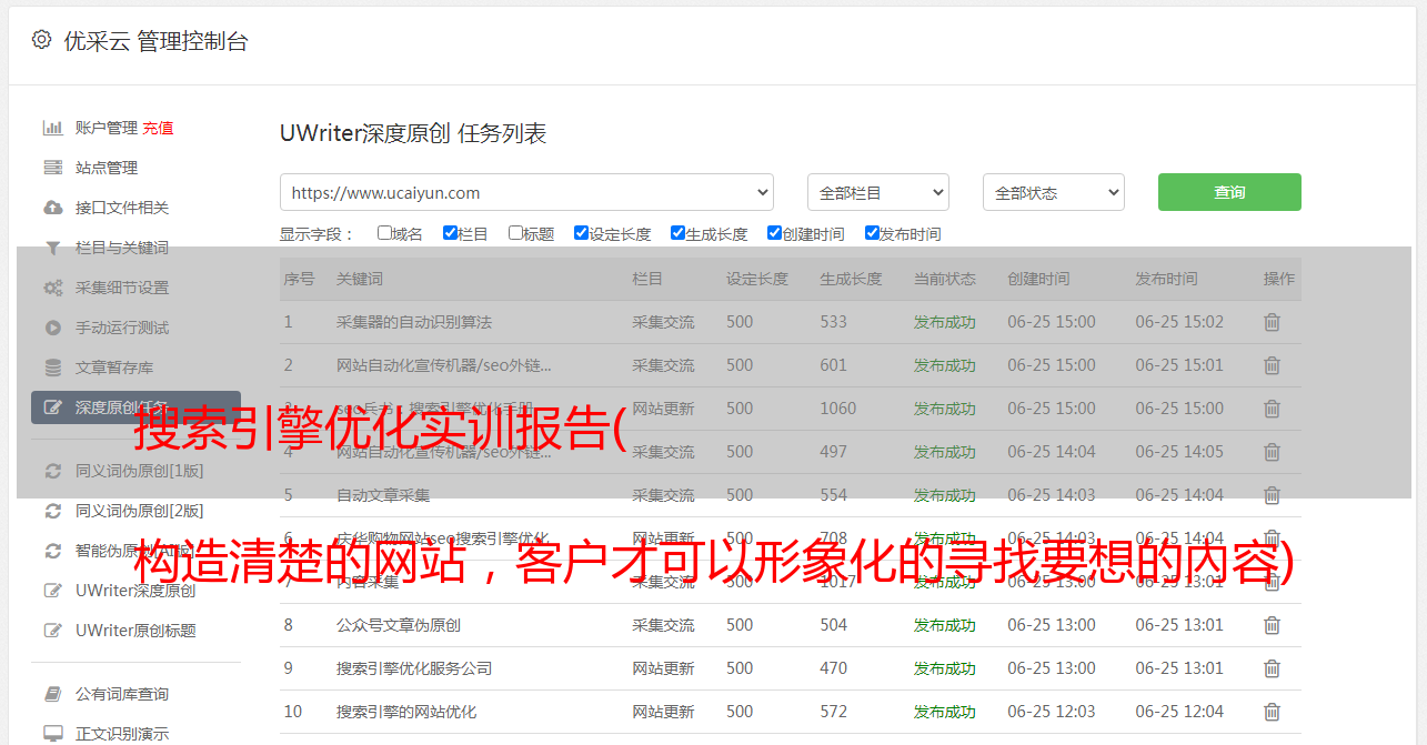 优采云 发布时间: 2022-03-27 14:21搜索引擎优化实训报告(
