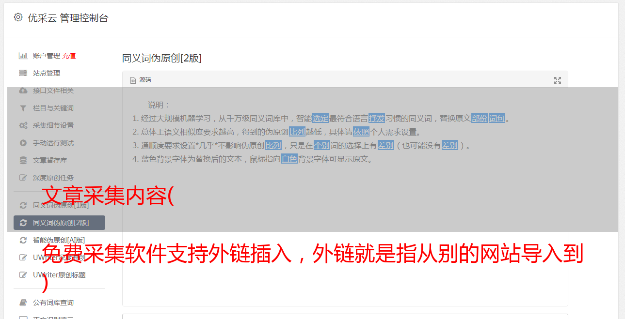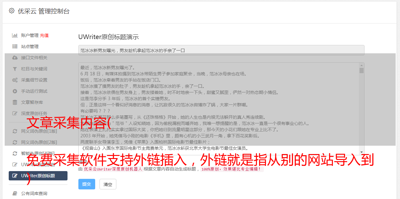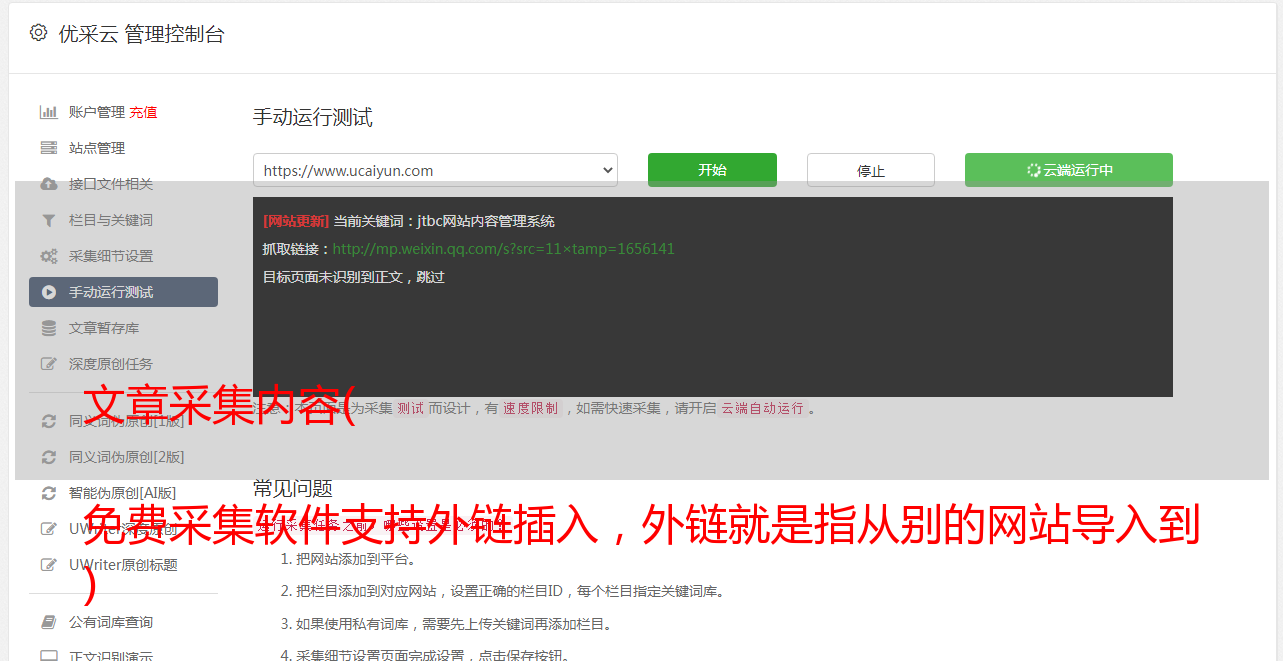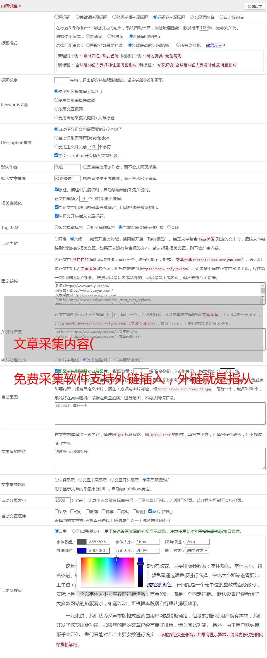 免费采集软件支持外链插入,外链就是指从别的网站导入到