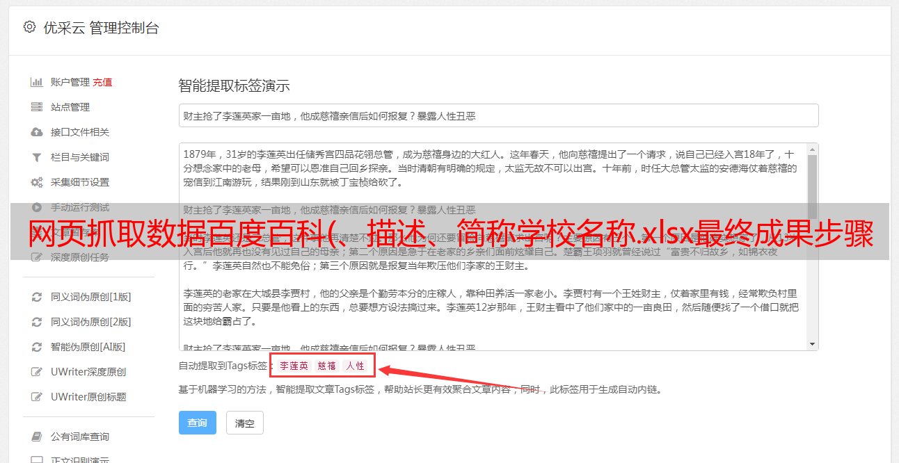 网页抓取数据百度百科(、描述、简称学校名称.xlsx最终成果步骤及步骤)