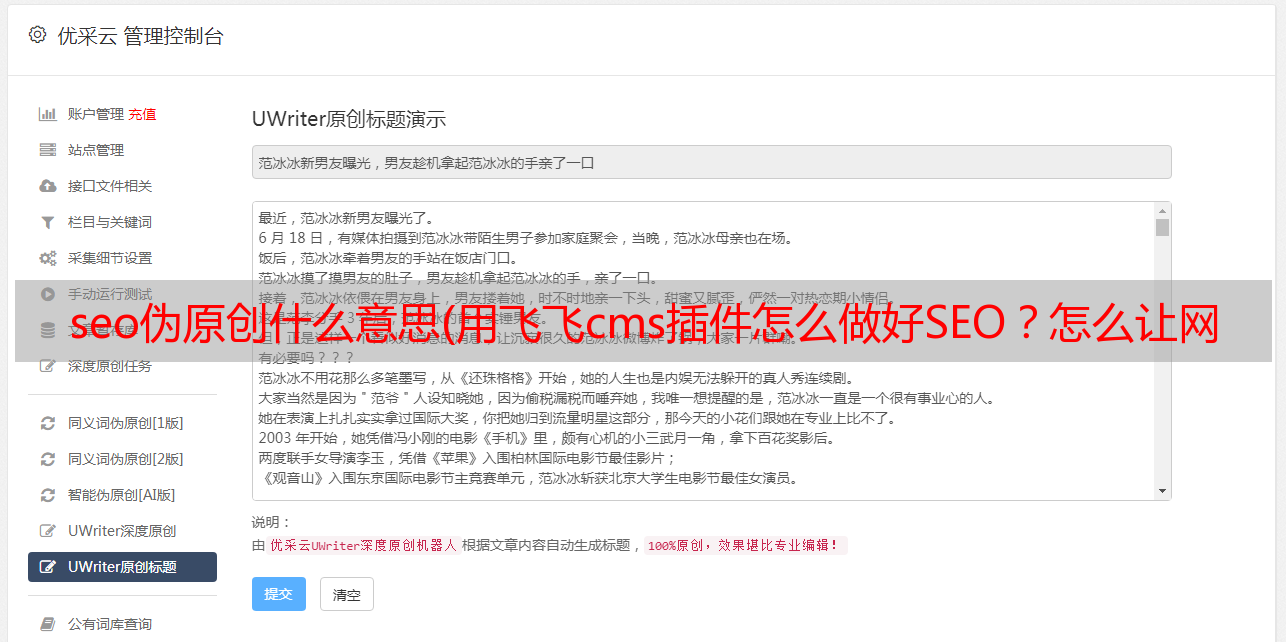 seo伪原创什么意思(用飞飞cms插件怎么做好SEO?怎么让网站快速收录以及关键词排名?)