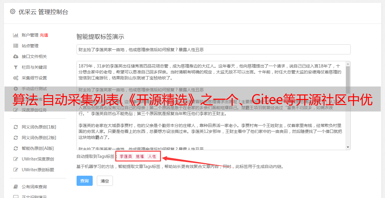 优采云 发布时间: 2022-03-29 17:16算法 自动采集列表(《开源精选》之一个、Gitee等开源社区中优质项目)
