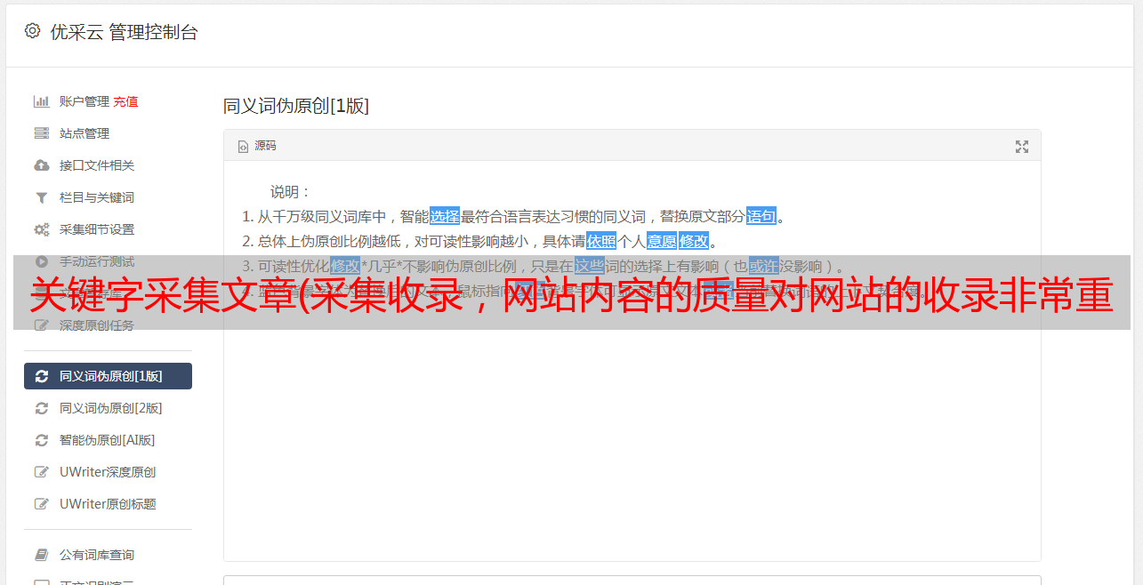 采集收录的内容虽然是采集,但是大部分内容没有标题关键词,连关键词都没有,怎么会有排名呢,所以我们每个采集收录文章都要设置一个主关键词,这样才有可能参与排名,但是如果采集的文章 没有主关键词 怎么办,那么采集收录 需要修改标题,把没有主关键词 的标题改成有关键词 标题。
