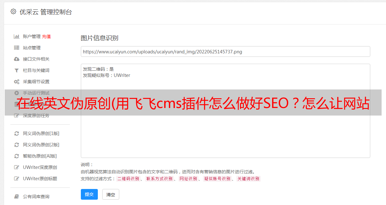 优采云 发布时间: 2022-03-30 00:10在线英文伪原创(用飞飞cms插件怎么做好SEO?怎么让网站快速收录以及关键词排名?)