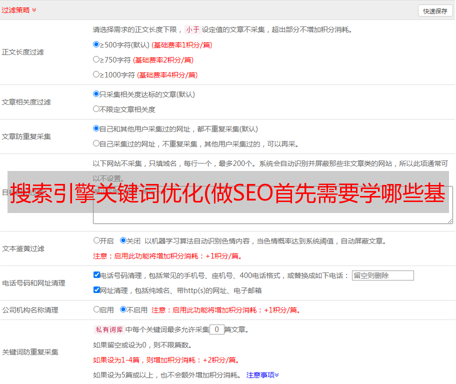 我们都知道,从事网站SEO优化的工作人员需要掌握高强度技术和周边相关技术,才能更好的上网。如果以上都没有问题,我们可以使用这个文章关键词采集工具实现自动采集伪原创发布和主动推送到搜索引擎,操作简单易学 需要学习更专业的技术。做SEO需要先学习哪些基础知识?