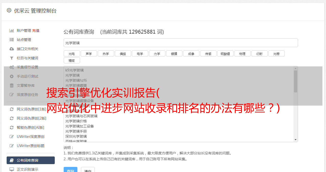 优采云 发布时间: 2022-03-30 03:18搜索引擎优化实训报告(