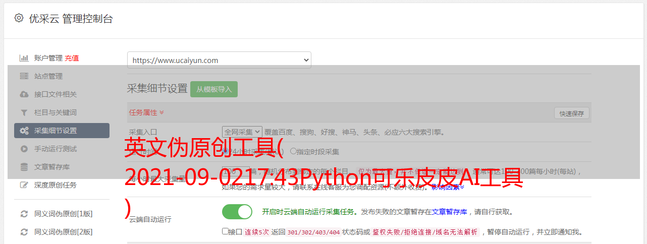 英文伪原创工具( 2021-09-0217:43Python可乐皮皮AI工具 )