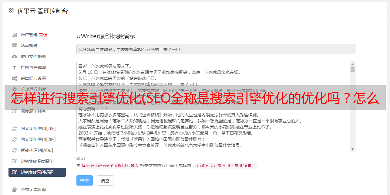 优采云 发布时间: 2022-03-30 07:12怎样进行搜索引擎优化(SEO全称是搜索引擎优化的优化吗?怎么做?)