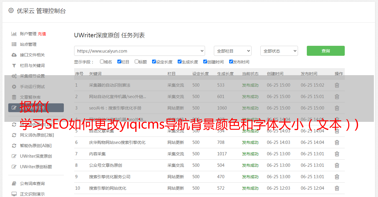 报价( 学习SEO如何更改yiqicms导航背景颜色和字体大小(文本))