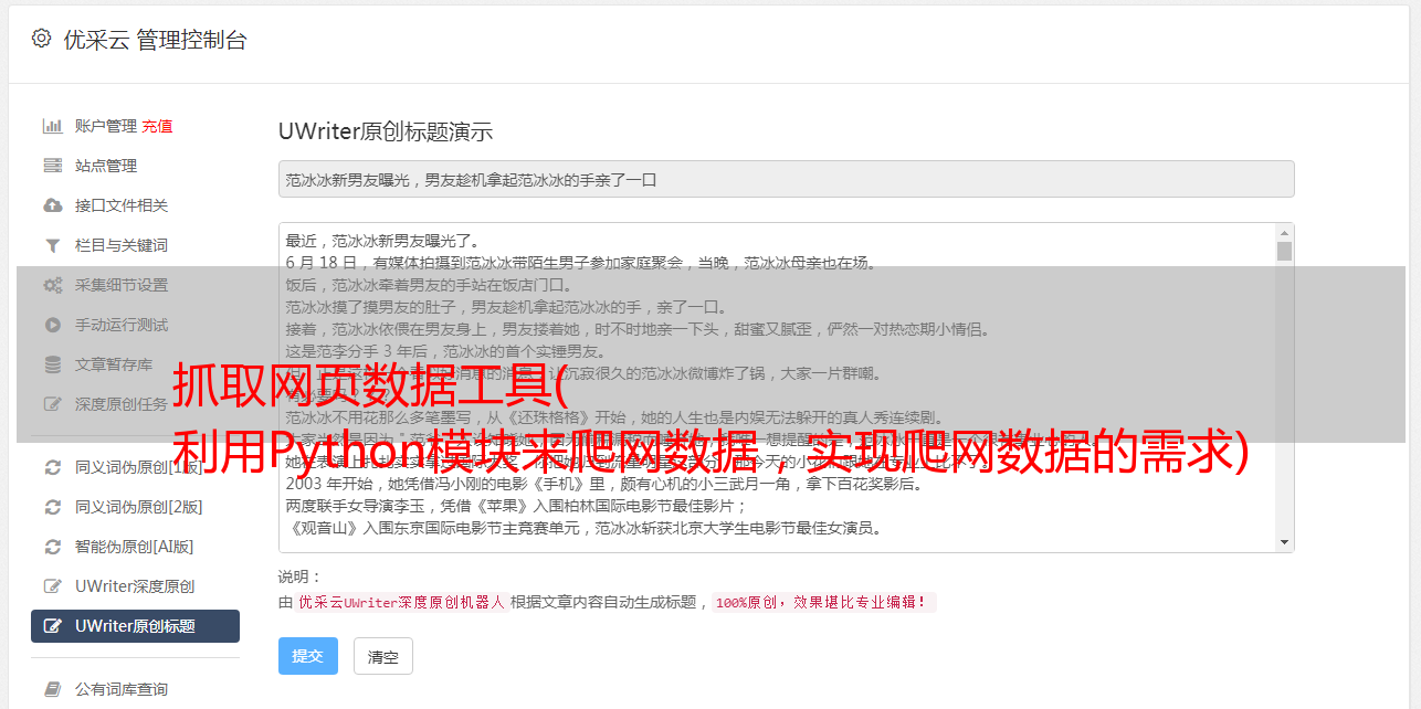 利用Python模块来爬网数据,实现爬网数据的需求)
