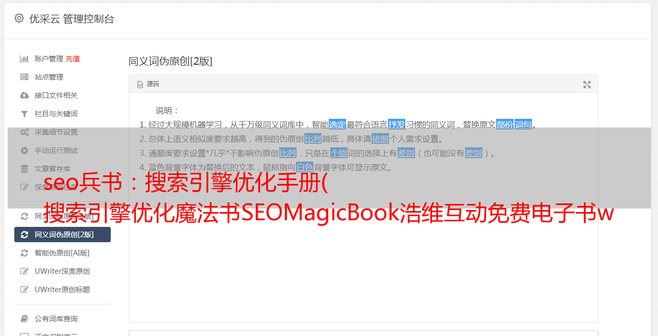 优采云 发布时间: 2022-03-30 23:15seo兵书:搜索引擎优化手册(